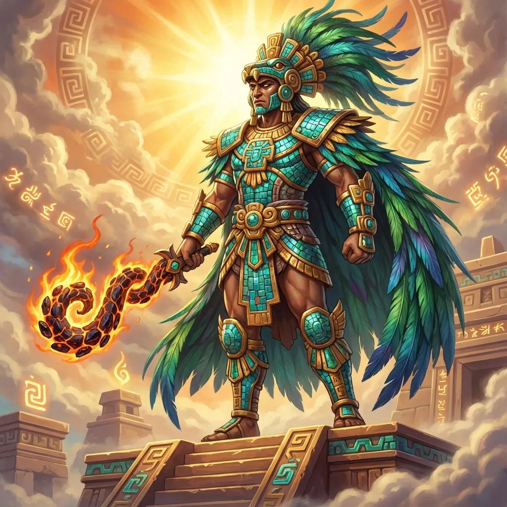 - reverence: Honor with dawn offerings of copal and flowers, maintain a watch at first light, sing the ancestral war‑chants and keep communal vows of protection. Ritual dances, the keeping of light at the temple, and the presentation of symbolic warrior tokens (feathers, polished stone, maize) acknowledge his role as guardian of the people and the sun.