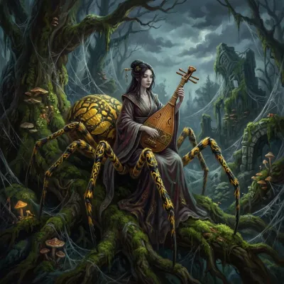 In the shadow of a Japanese castle, a beautiful woman plays a biwa. But do not be fooled. The Spider Woman weaves a web of seduction and death.