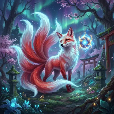 Amidst the lanterns and laughter of the Matsuri, a nine-tailed spirit walks among us. A study in duality, disguise, and fried tofu.