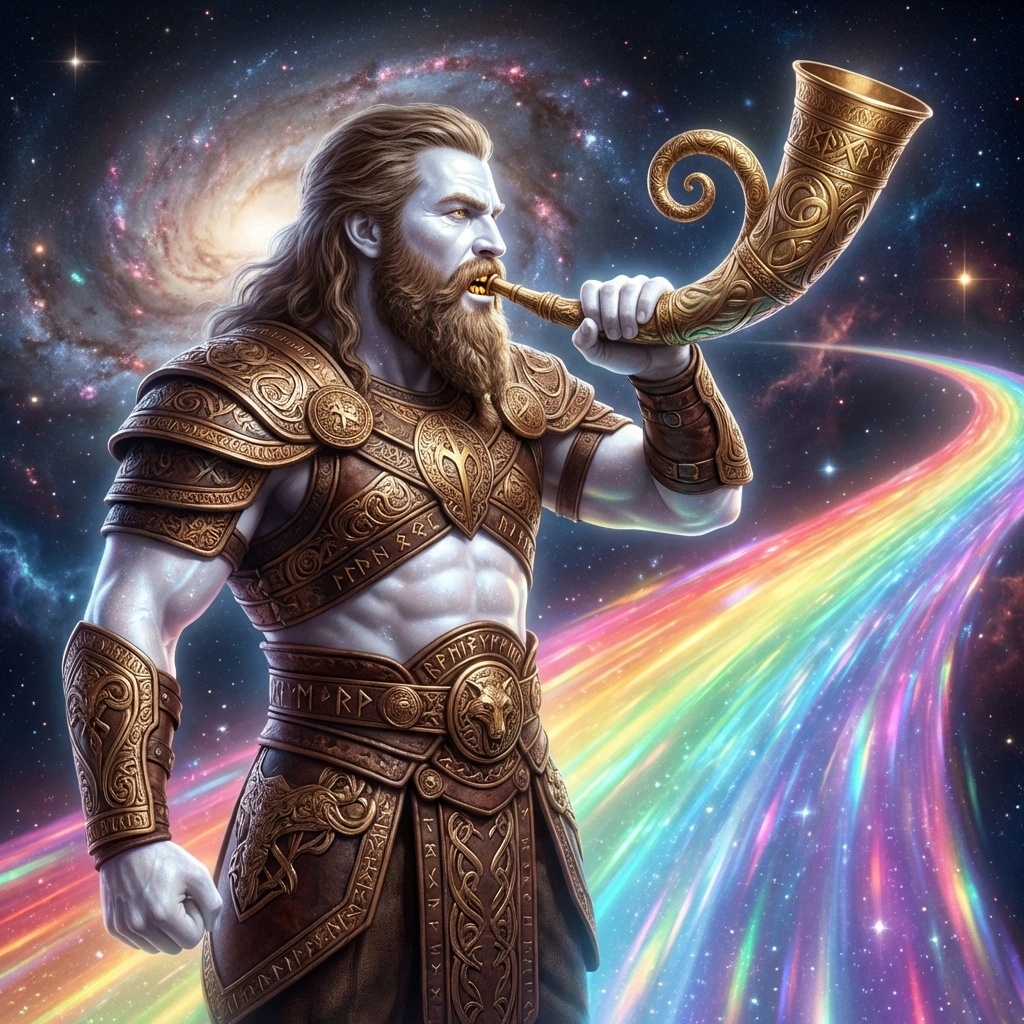 He carries the Gjallarhorn (Yelling Horn). This is not a musical instrument. It is a cosmological alarm system. It is buried under the roots of Yggdrasil for safekeeping. When the enemies of the gods (The Giants, The Dead, The Wolf) launch their final assault at Ragnarök, Heimdall will blow the horn. The sound will be loud enough to be heard in all nine worlds, waking the gods and the dead for the final battle.